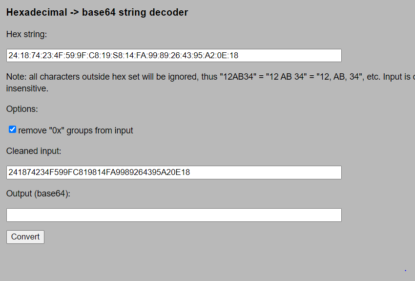 Hexadecimal -> base64 string decoder