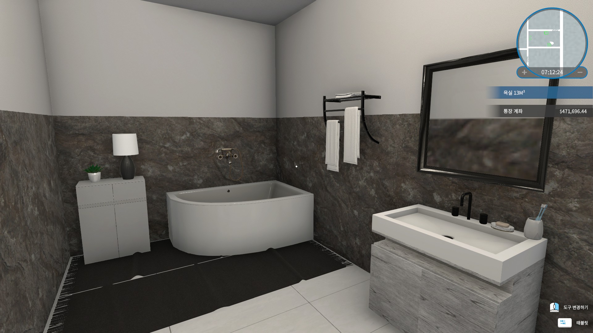 정말 마음에드는 바닥 타일이 있었는데, 벽타일이 패턴반 색상반으로 선택이 안돼 급히 다른 패턴으로 바꿔주었다ㅠ...