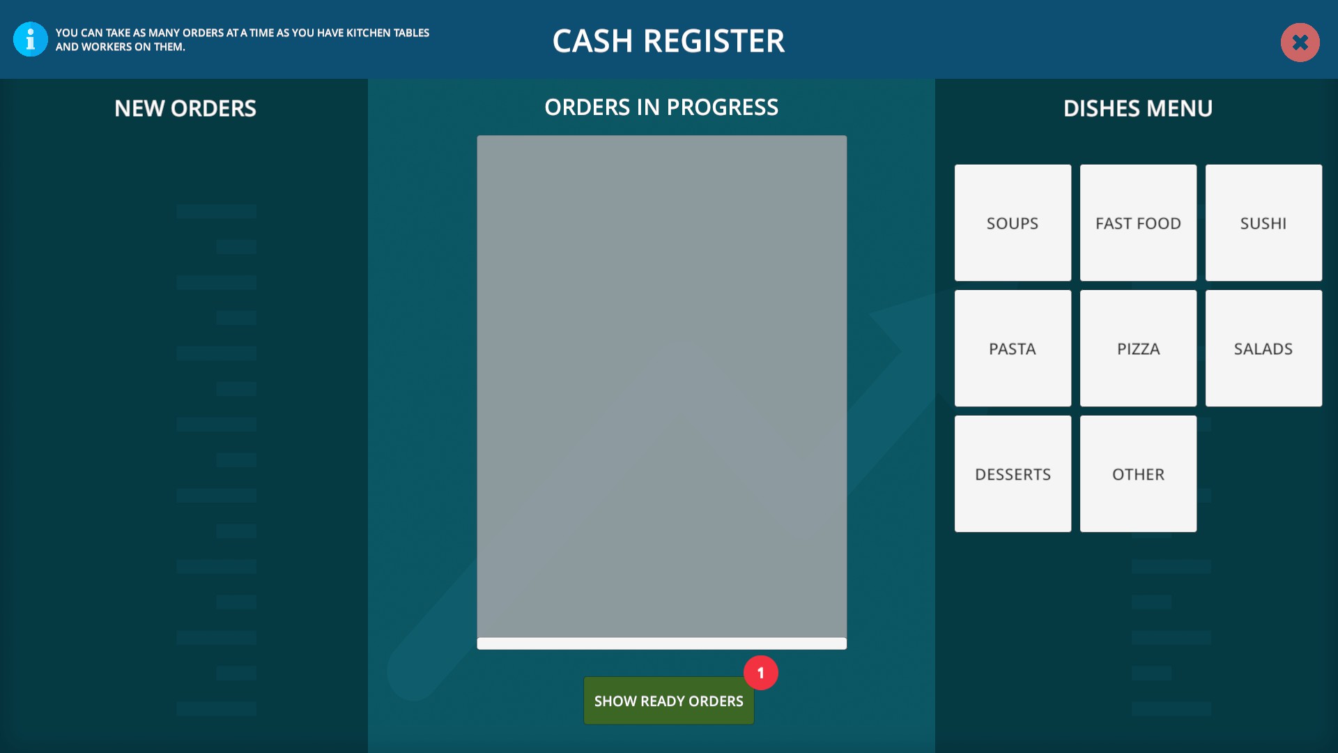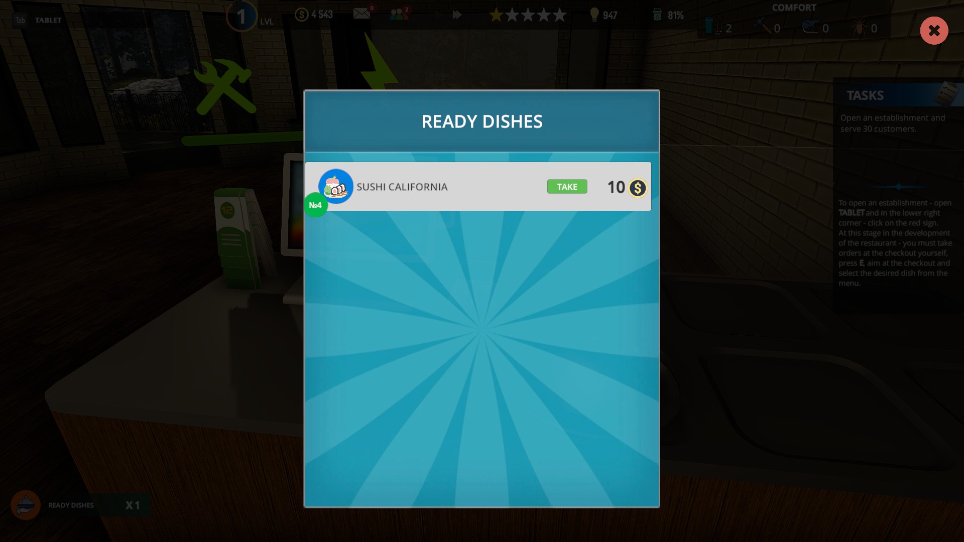 음식이 준비되면 SHOW READY ORDERS 버튼을 누르고 TAKE 버튼을 눌러 음식을 손에 들 수 있다.