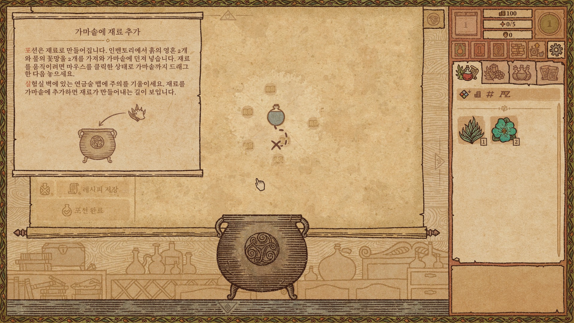 초보 연금술사인 플레이어가 버려진 연금술사의 집에서 포션을 만들며 상점을 운영하는 게임이다.