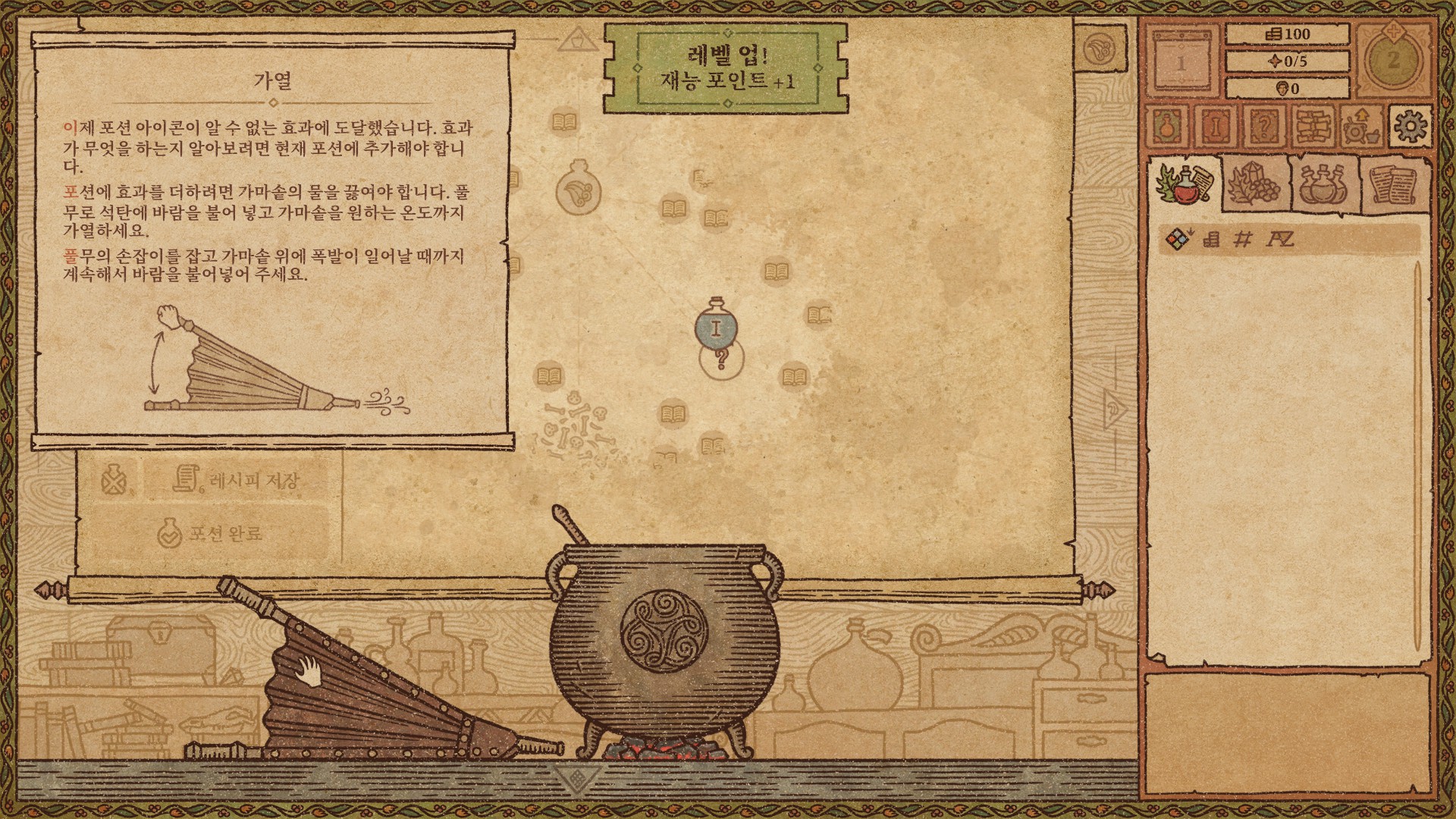 특정 효과에 도착하면 포션에 효과를 더해주기 위해 가열을 해야 한다.