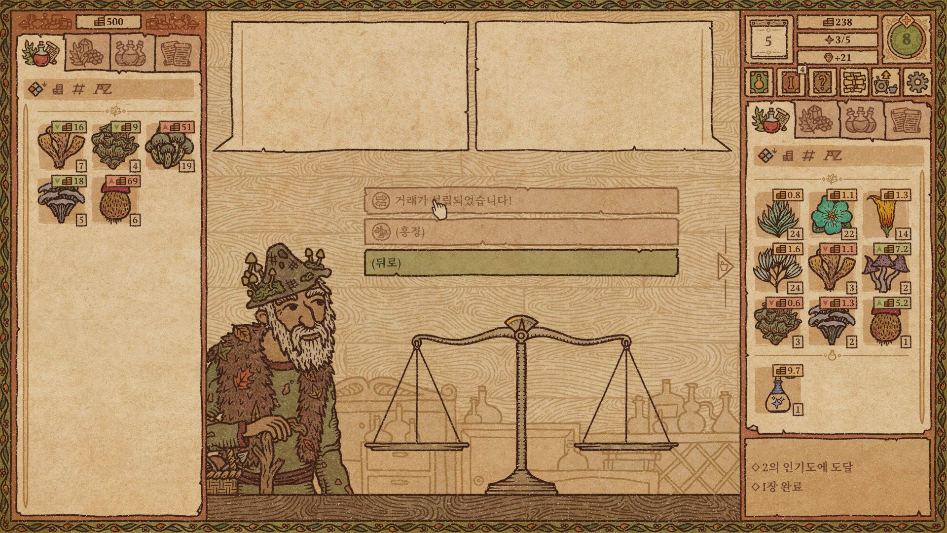 포션을 만드는 장소에서 좌측으로 이동하면 손님들에게 포션을 판매할 수 있다.