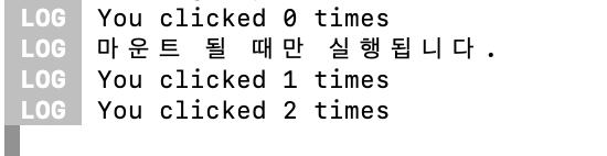 예시 코드의 경우 TouchableWithoutFeedback 컴포넌트를 클릭했을 경우에만 콘솔에 로그가 출력되는 걸 확인할 수 있다.
