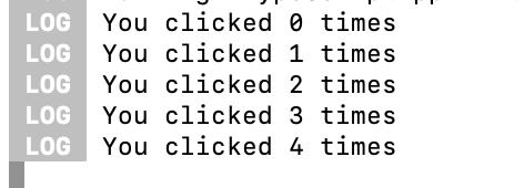 console.log(`You clicked TouchableWithoutFeedback ${clickCount} times`);