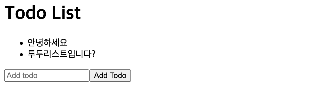 자세한 예제 코드는 다음과 같다. TODO 리스트를 관리하고 TODO를 추가하는 기능을 구현한 예제 코드이다.