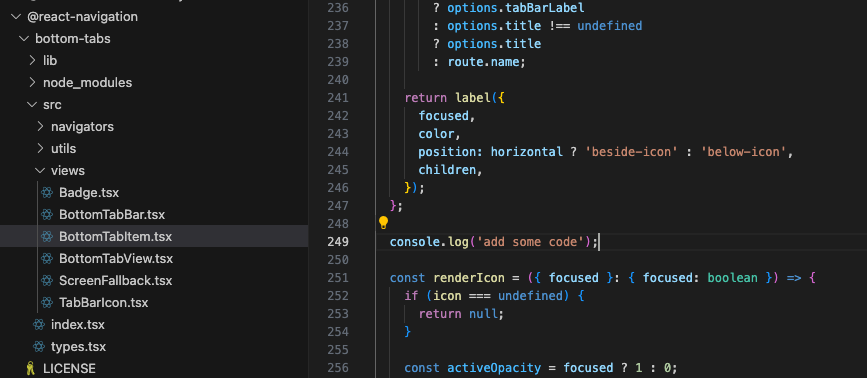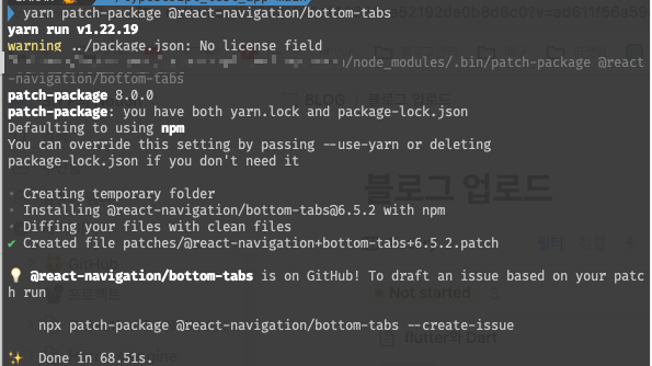 2. 콘솔에서 yarn patch-package @react-navigation/bottom-tabs 실행