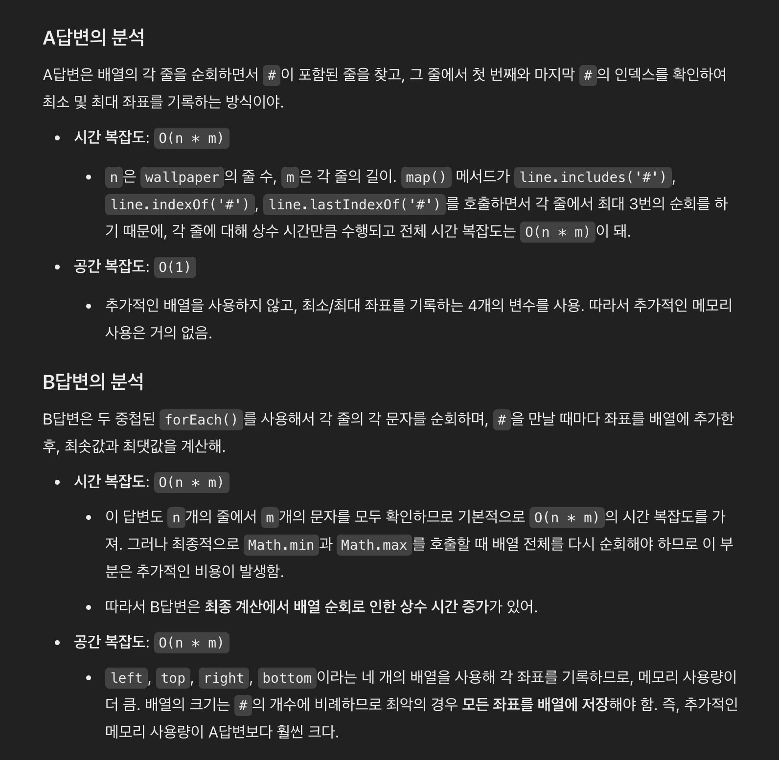 - wallpaper[i][j]는 바탕화면에서 i + 1행 j + 1열에 해당하는 칸의 상태를 나타냅니다.
