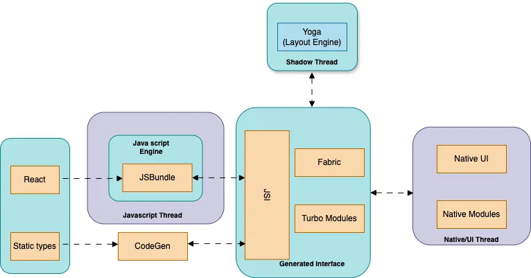 New Architecture는 JSI 외에도 Fabric, TurboModules, Codegen과 같은 새로운 개념이 도입되었다.